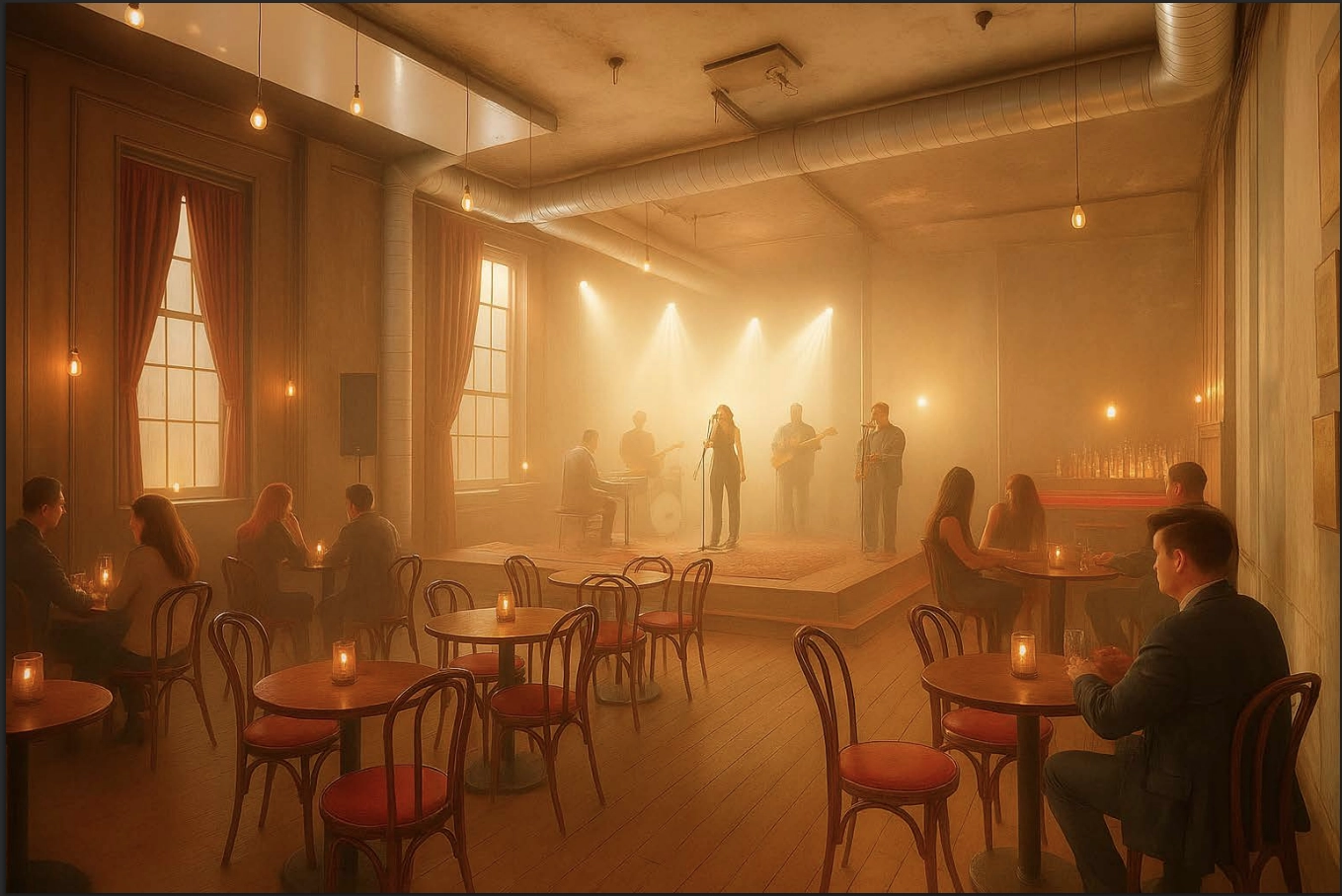 Downstairs we will create a live music venue that will rival the best. Jazz and blues in an atmospheric speak easy style setting once a month with combined dining and entertainment. Other scheduled evening entertainment will fill up Thursday and Friday evenings with Saturday nights being kept available for wedding hire and Functions.